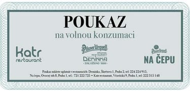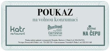 Vyberte si dárkový poukaz do restaurace Katr nebo univerzální poukaz platný ve všech třech restauracích.